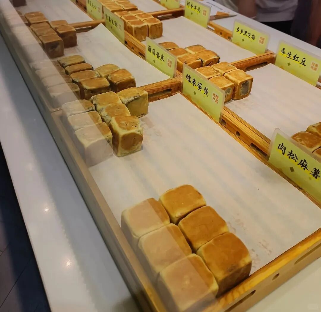 不同于傳統(tǒng)糕點散裝稱重的形式,店內(nèi)所有產(chǎn)品按塊售賣,價格6-9元/塊。