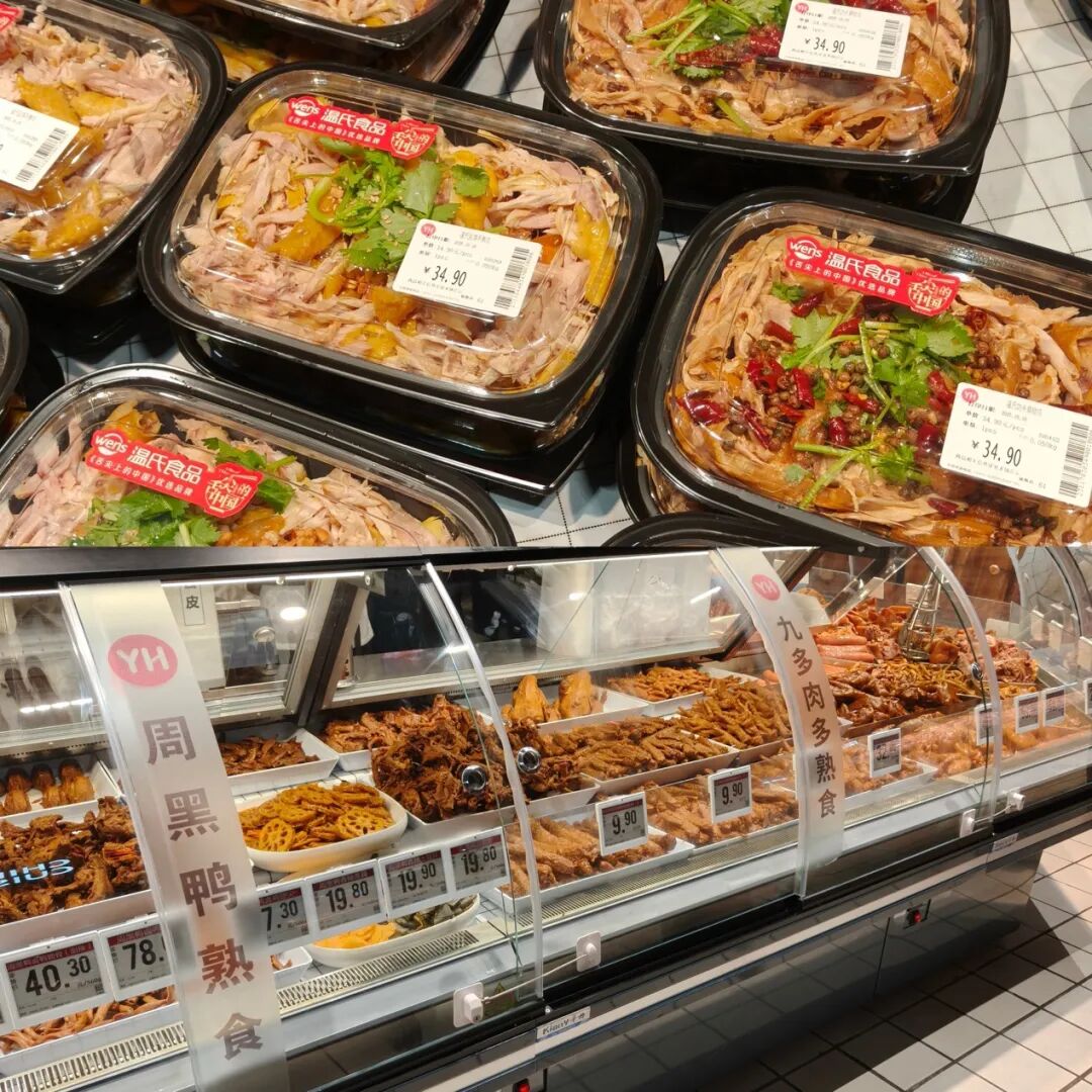 我們觀察發(fā)現(xiàn),福州當(dāng)?shù)嘏指挠垒x食品區(qū)的部分商品還沒有完全實(shí)現(xiàn)直營,一些商品還需要引進(jìn)聯(lián)營商,比如鹵味熟食區(qū)的周黑鴨、溫氏食品、九多肉多等。