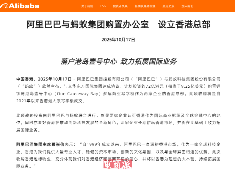 阿里又有大動(dòng)作了,不過這次不在內(nèi)地,而是落在了香港。