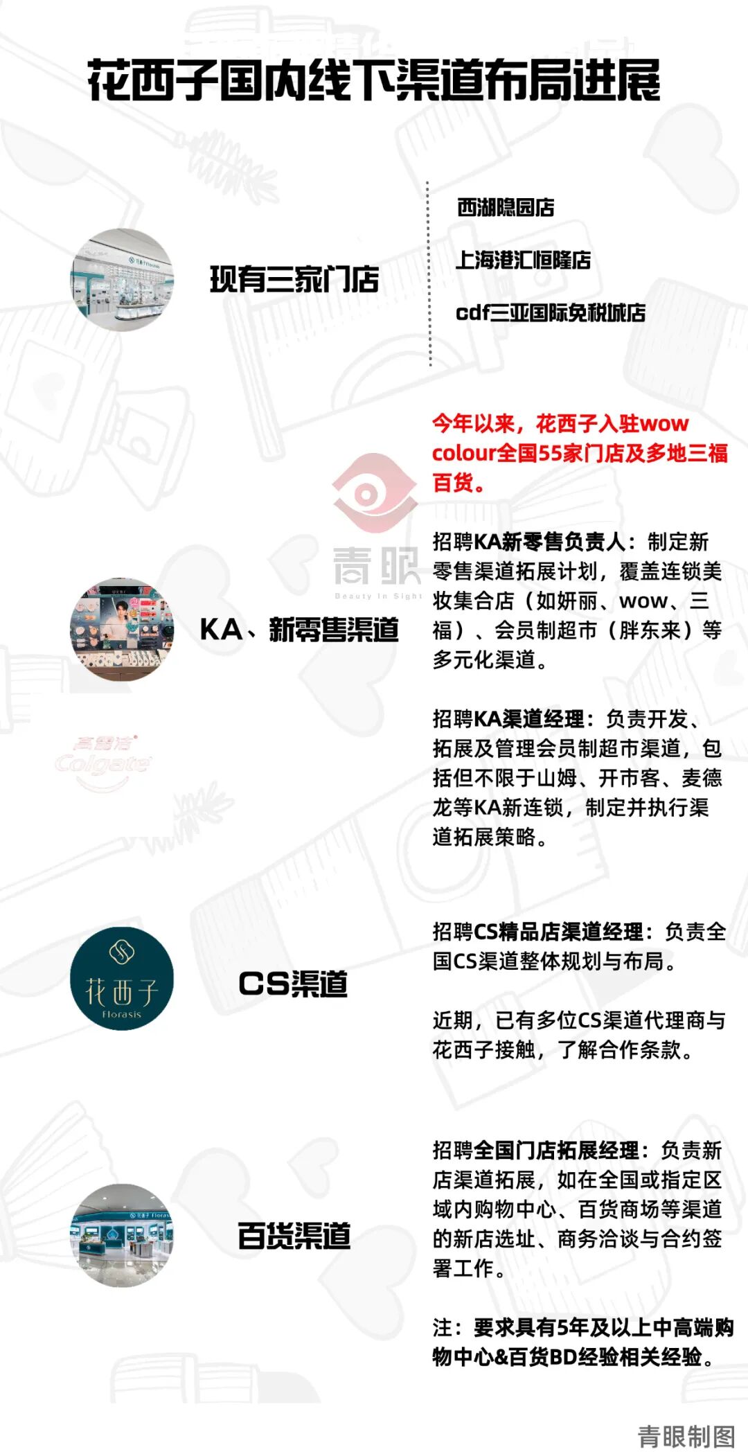 據(jù)招聘平臺顯示,花西子正在招聘CS精品店渠道經(jīng)理,該崗位需負(fù)責(zé)全國CS(化妝品專營店、區(qū)域百強(qiáng)連鎖)渠道的整體規(guī)劃與布局,制定并執(zhí)行渠道發(fā)展策略,確保年度銷售目標(biāo)的達(dá)成。