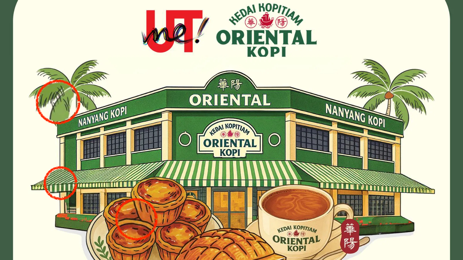 柔佛本地插畫師安妮絲告訴我們,這些作品甚至不是出自高級(jí)AI工具,更像是免費(fèi)AI軟件的產(chǎn)物!扒瓣囎硬皇橇餍邪颜掌D(zhuǎn)成卡通風(fēng)格嗎?這組圖案的風(fēng)格就和當(dāng)時(shí)那些AI作品一模一樣!彼找出了這些圖案可能的原型——華陽茶室官方菜單上的菜品照片,兩者在構(gòu)圖與元素上高度相似,看起來確實(shí)像是照片直接“AI化”的結(jié)果。