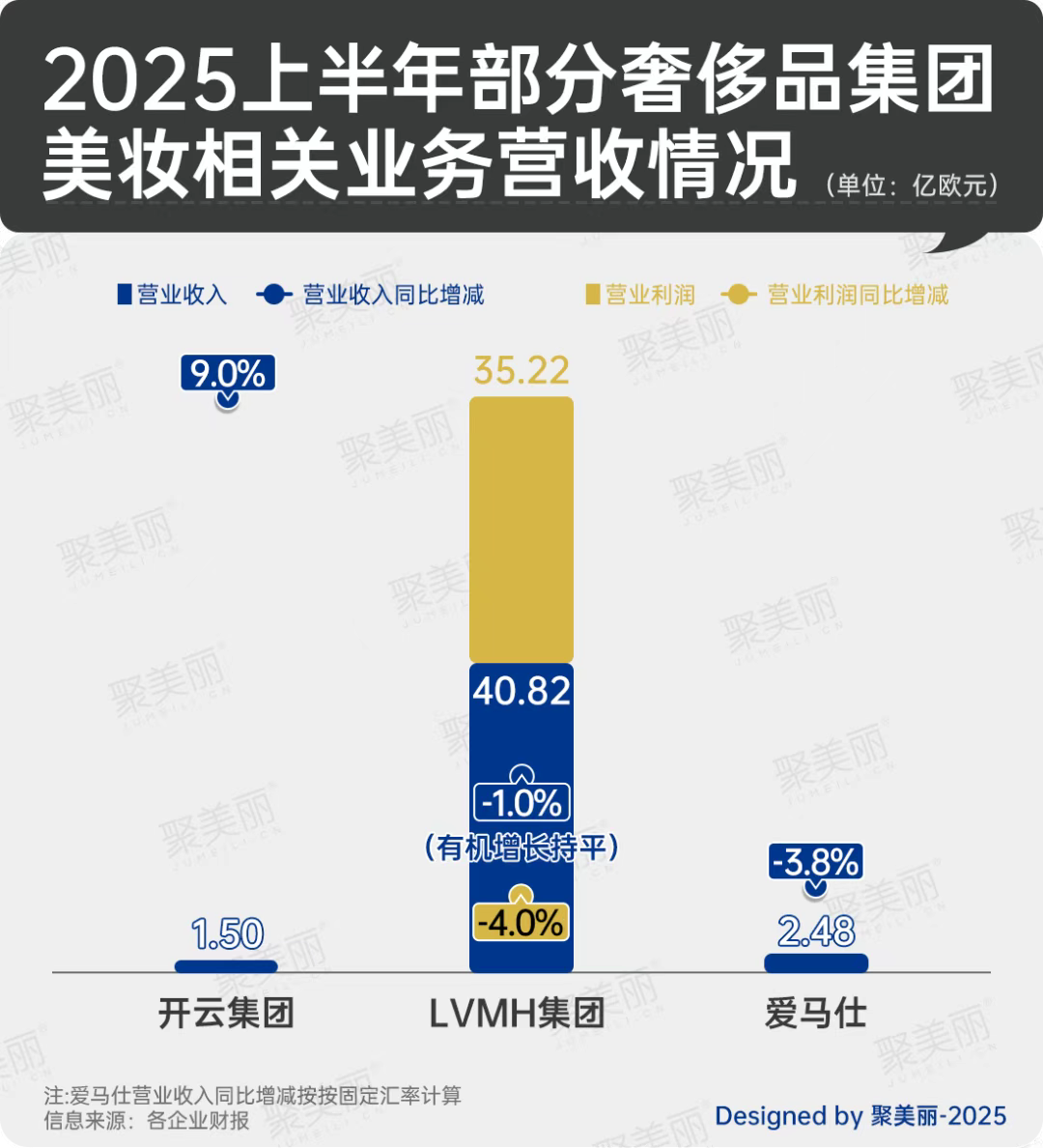 從整體營收表現(xiàn)來看,今年上半年開云集團整體營收為75.87億歐元(約合人民幣629.73億元人民幣),開云美妝營收1.50億歐元(約合人民幣12.45億元),占比不到2%。這或意味著,開云集團在美妝領(lǐng)域的自主運營(Kering Beauté)并不算成功。