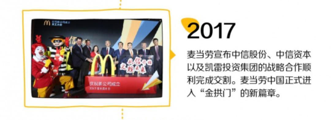 時光流轉(zhuǎn)至2017年。由中信股份、中信資本及凱雷投資集團(tuán)組成的聯(lián)合體,正式完成了對麥當(dāng)勞中國區(qū)業(yè)務(wù)的收購,肩負(fù)起在中國市場運營與發(fā)展麥當(dāng)勞的重任。