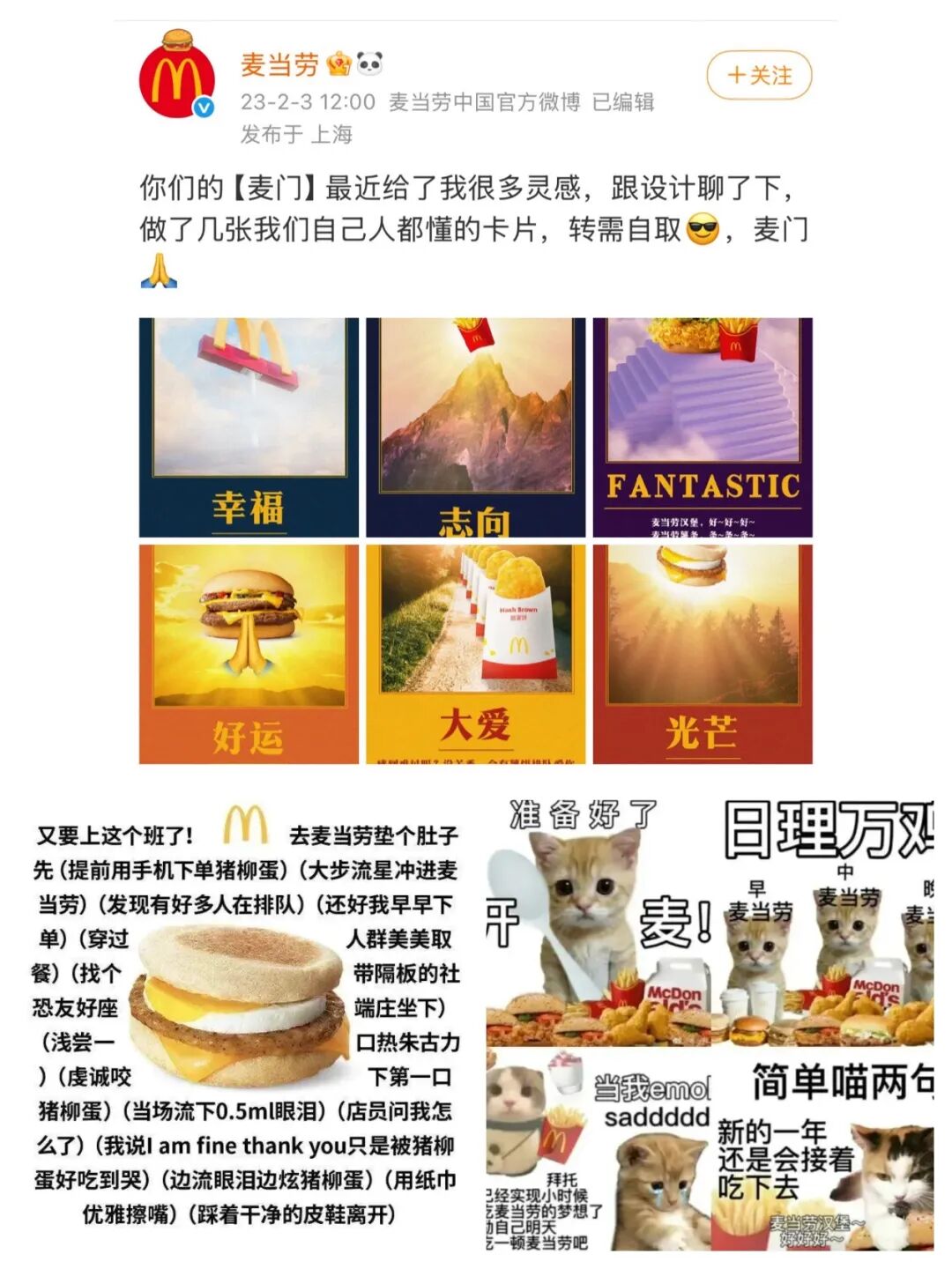 有人說,心情不好的時候,除了倒立防止眼淚流下來,還可以去刷刷麥當(dāng)勞的官號,那里堪稱當(dāng)代網(wǎng)友的“電子快樂老家”,賬號運營“帶薪網(wǎng)上沖浪”,張口就是梗,出手就是段子,正是這種“認(rèn)真陪你瘋”的互動姿態(tài),讓麥當(dāng)勞從一家快餐品牌,升格為一種青年文化現(xiàn)象。