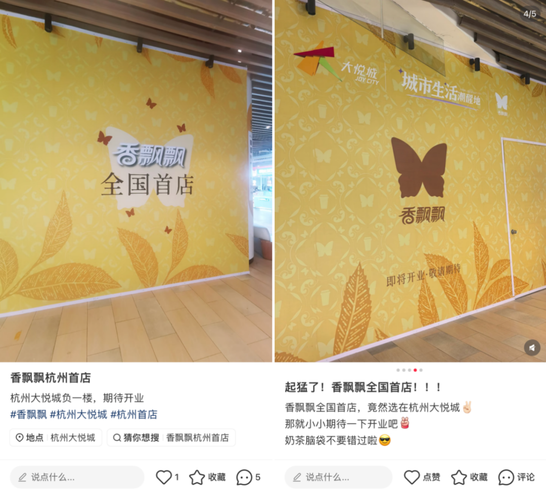 這些快閃店通過店員現(xiàn)場拆解泡制流程,傳遞“真茶鮮奶”價值,快閃店收獲的短期聲量讓香飄飄驗證了線下體驗的價值,也為此次固定首店的開設(shè)積累了經(jīng)驗。