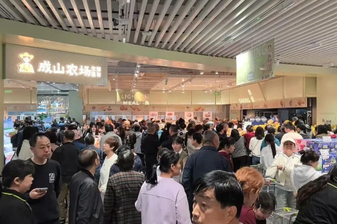 人氣太旺了!這是我們進入成山農(nóng)場西安凱德廣場御錦城店(以下簡稱成山凱德店)的第一印象。