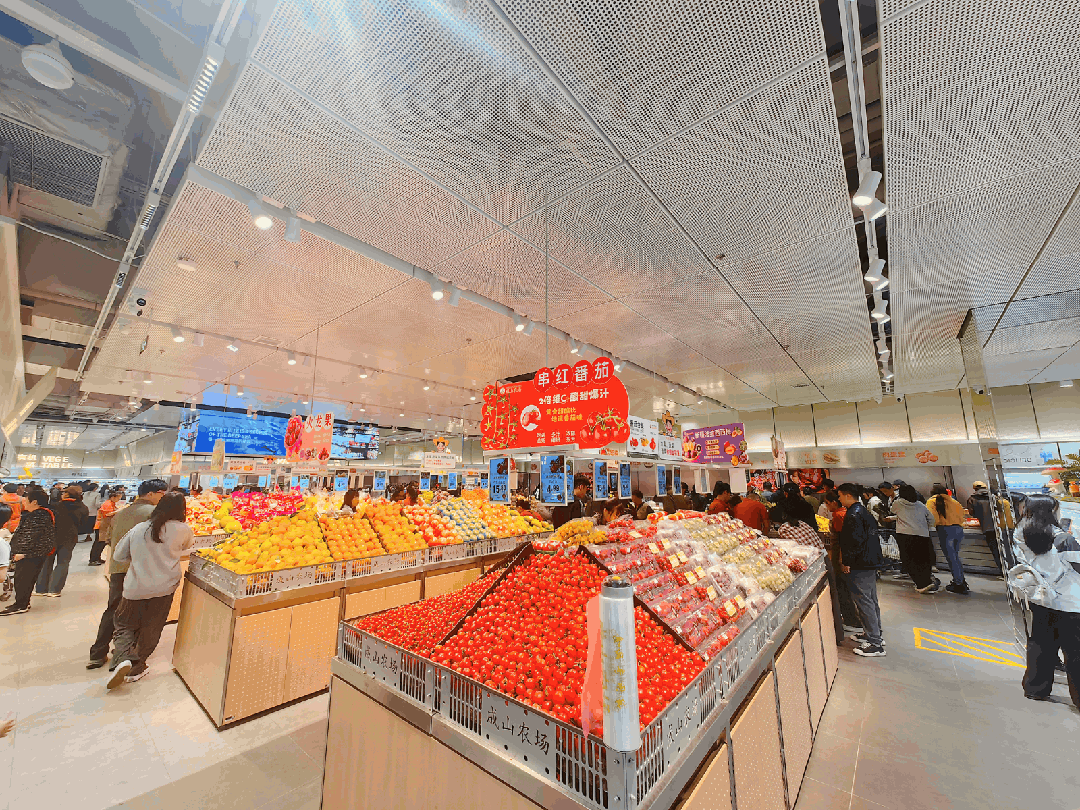 今年6月26日,經(jīng)過一個多月的籌備,成山農(nóng)場又開了未央龍湖天街店,這是成山農(nóng)場第一次真正意義上與購物中心合作的店,雖然在新區(qū)位置非常偏,但生意非常好,“當時開業(yè)店內(nèi)客流超過5萬多,我們把13萬㎡的龍湖天街客流,從兩萬拉到七八萬并且能夠持續(xù),F(xiàn)在龍湖天街和我們超市生意都非常好,這是一種強強聯(lián)合,因為周邊顧客買東西確實不方便,然后很多人開著車去買東西!