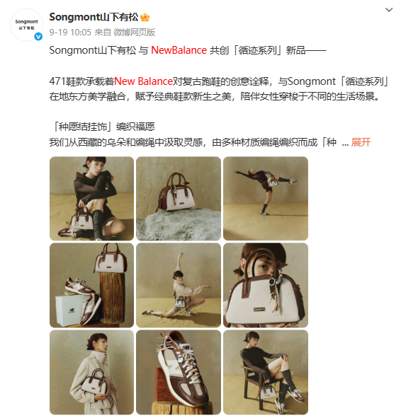 同在9月,山下有松和Newbalance進行聯名,令市場頗感意外。畢竟,山下有松不管是品牌氣質還是包型款式,與運動完全搭不上邊,但兩者混搭出的產品卻意外有股復古時尚的“miumiu”感。
