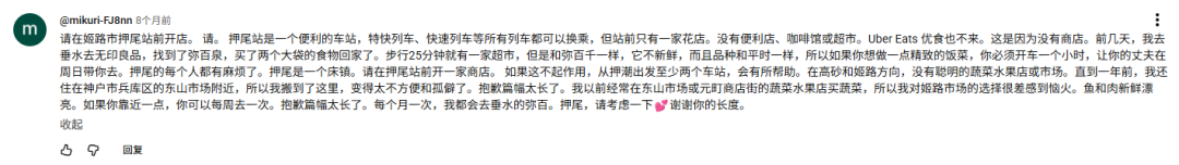 大意:網(wǎng)友請(qǐng)求八百鮮開到姬路市,并分析了當(dāng)?shù)厥袌?chǎng)的情況