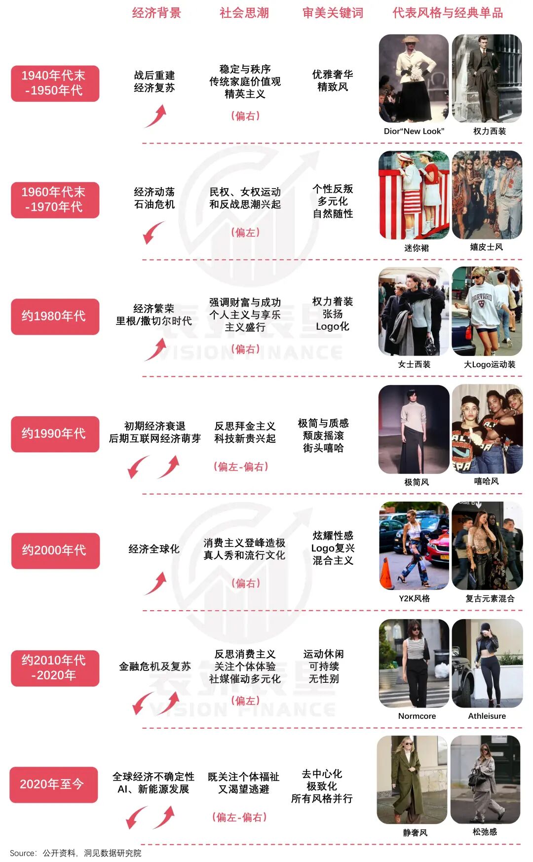 從更長的維度看,時尚也是一種周期輪回:當經(jīng)濟上行、保守主義占上風時,權力、地位開始主導審美;而經(jīng)濟動蕩、社會思潮強調(diào)公平時,時尚則化身個人自由表達的載體,包容與舒適成為新美學。