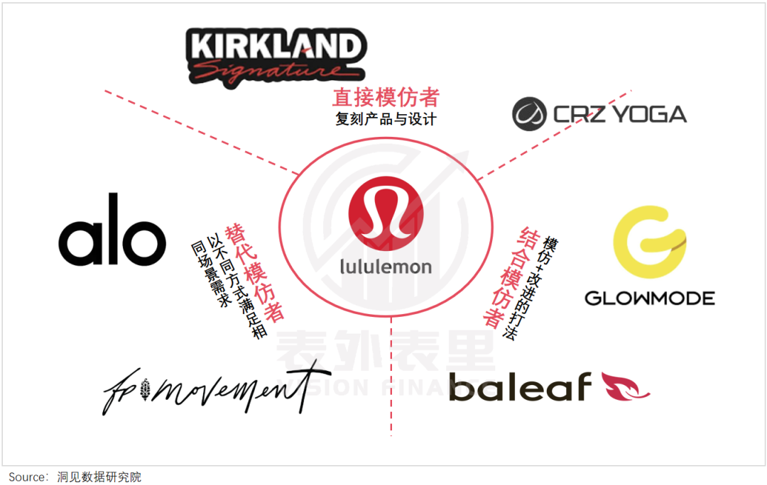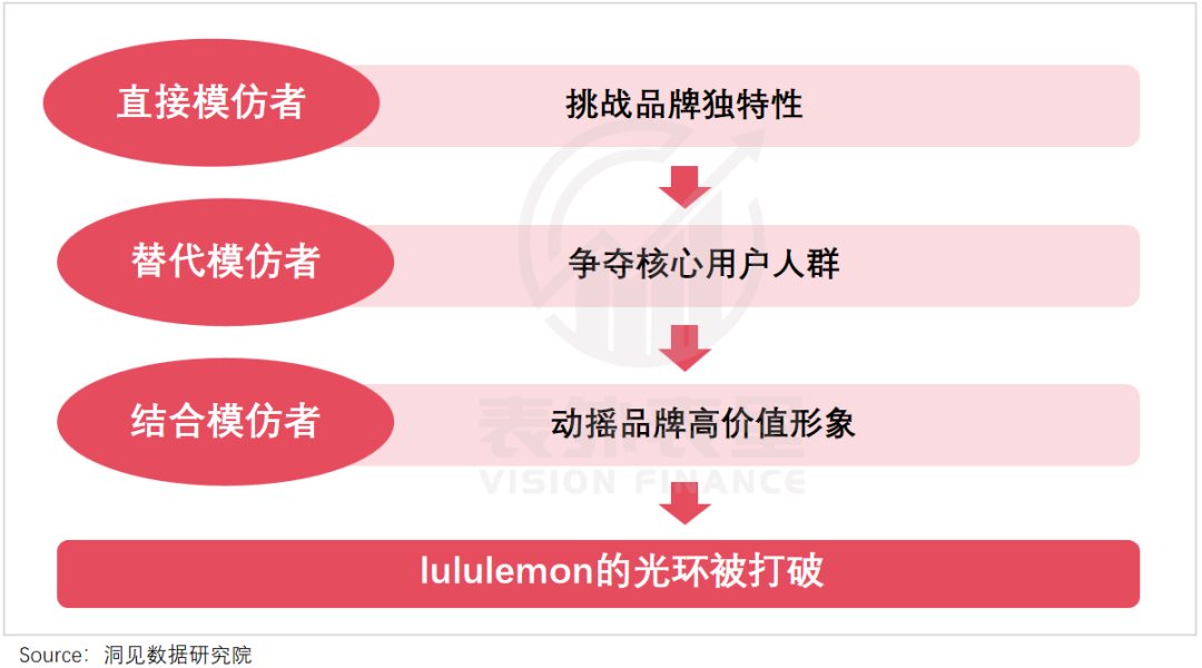 但隨著面料、工藝不再是獨家秘密,lululemon正被不同類型的競爭者層層包圍,昔日“無可替代”的感覺逐漸崩塌、消彌。