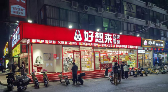對于消費者而言,量販零食總是打著“為大家省錢”的口號,將部分大包裝產品“拆開賣,按斤稱”。同時在線下,用大紅色或亮黃色的門店裝修,快速吸引人們的注意。就算是在黑天更早的北方市場,以好想來、趙一鳴零食為代表的量販零食品牌,也往往從8點營業(yè)至23點,甚至是24小時“超長待機”。