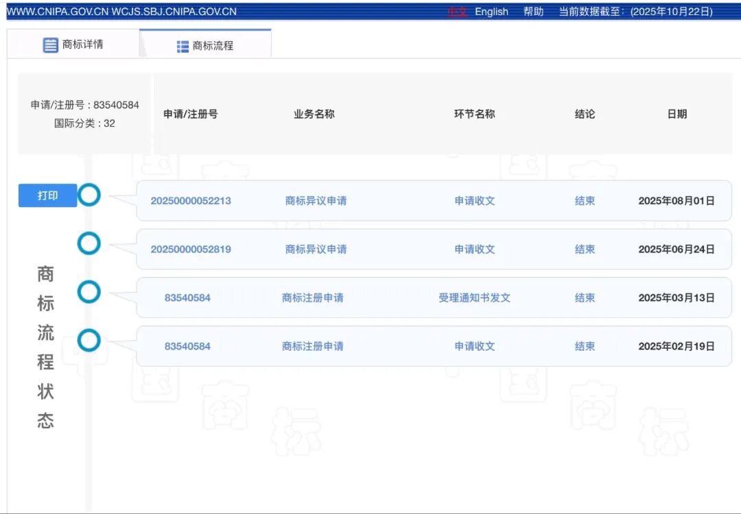 某一分類(lèi)下娃小宗商標(biāo)的流程進(jìn)度。圖源:中國(guó)商標(biāo)網(wǎng)