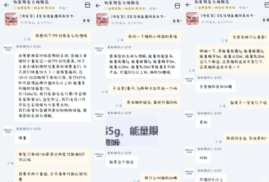 其中,珀萊雅對(duì)于未領(lǐng)到限時(shí)799-30店鋪券的消費(fèi)者,也給予補(bǔ)償措施:參與預(yù)售的消費(fèi)者,加贈(zèng)價(jià)值50元以上的能量系列隨機(jī)體驗(yàn)裝。