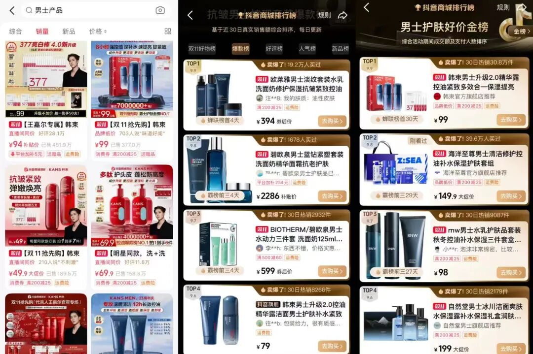 細(xì)分賽道多個(gè)黑馬出圈,韓束登頂男士護(hù)膚榜