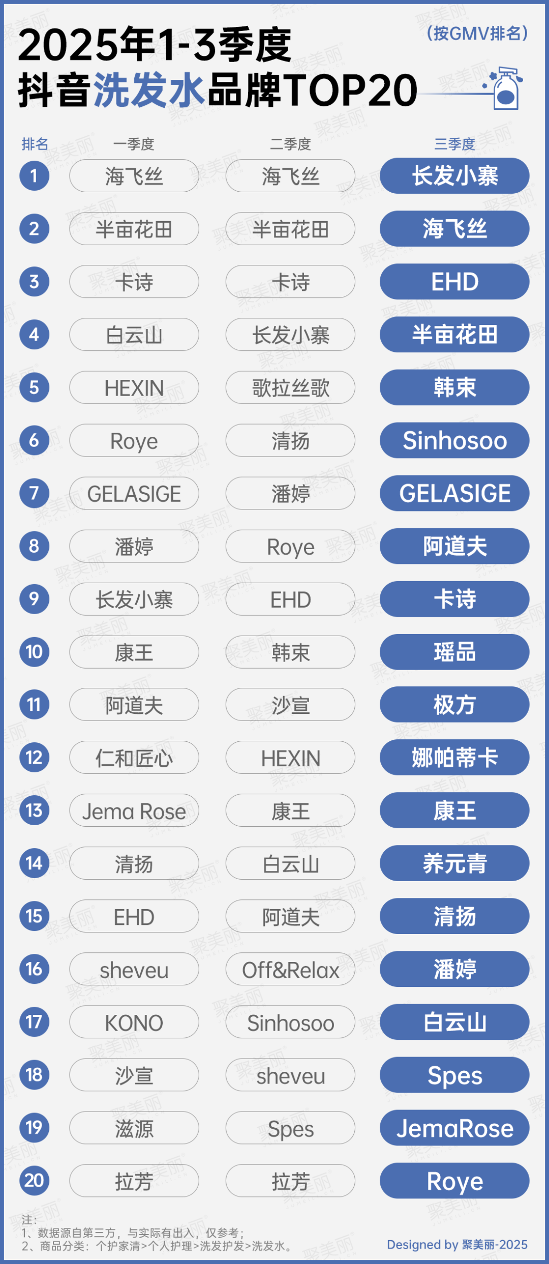 從細(xì)分領(lǐng)域來(lái)看,品牌格局的變化更為顯著,因爆品的打法赫系連續(xù)三個(gè)季度登頂洗護(hù)套裝榜單TOP1,而養(yǎng)元青、蜂花、施華蔻、自然堂等均有單季/多個(gè)季度在榜。