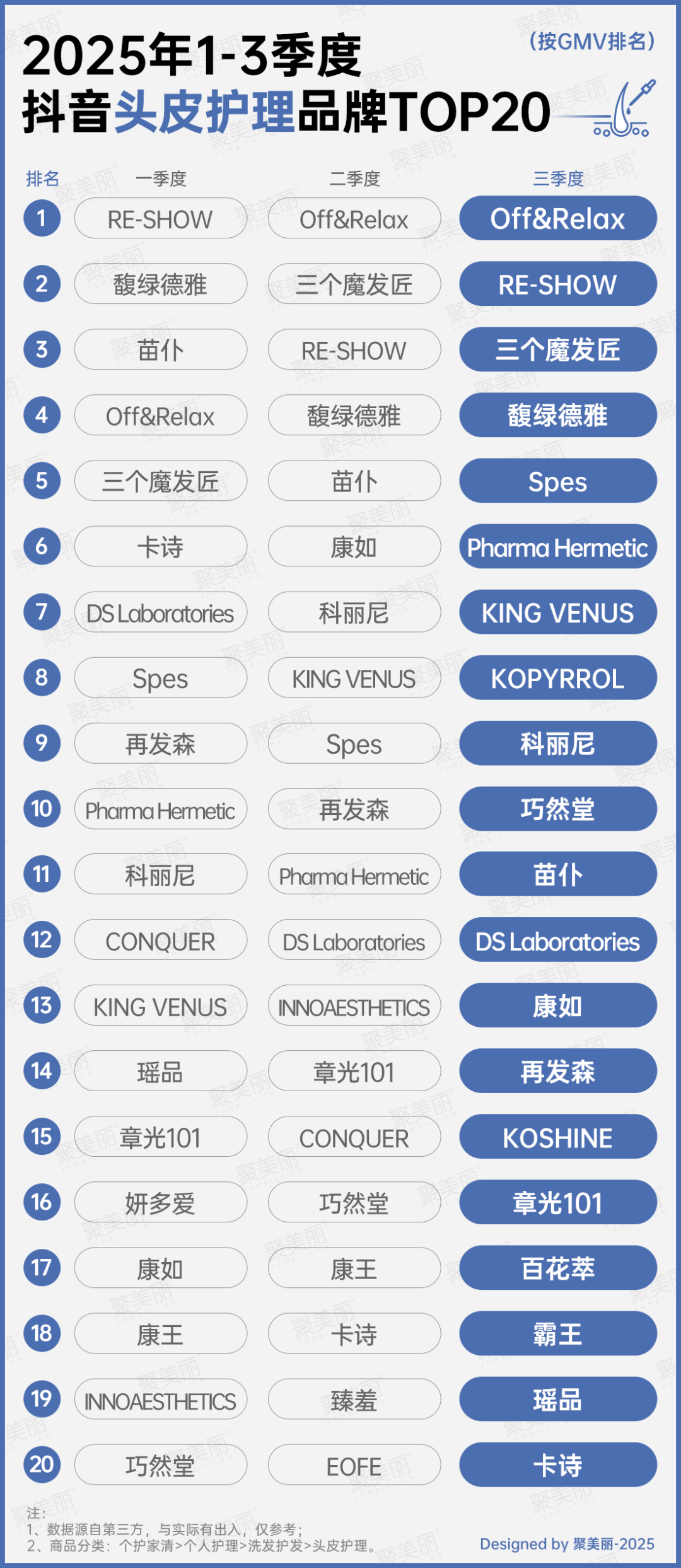 在頭皮護(hù)理方面,珀萊雅旗下Off&Relax在二、三季度蟬聯(lián)TOP1,RE-SHOW則三個(gè)季度均穩(wěn)居前三,三個(gè)魔法匠則在二、三季度闖進(jìn)TOP3。