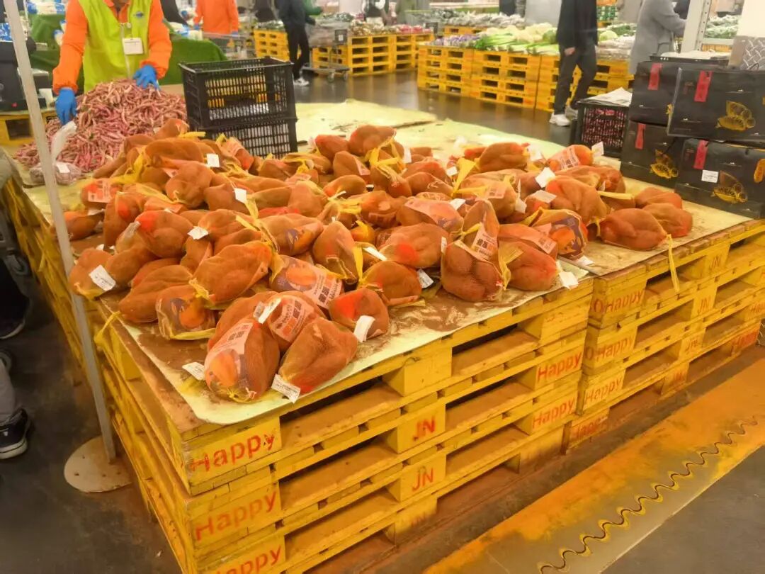 蔬菜在二樓,和一樓的水果陳列一樣,全部用托盤打堆銷售,很接“地氣”。