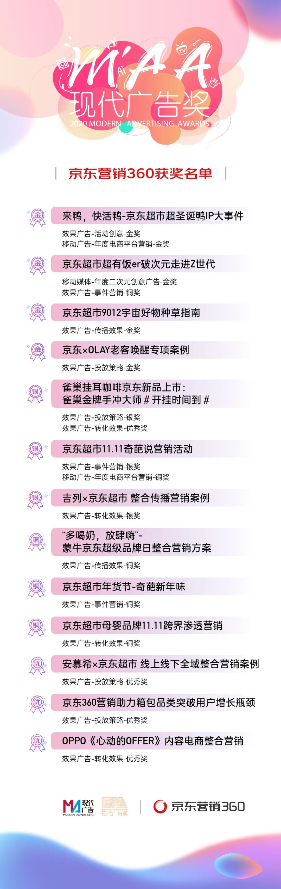 在負責京東零售營銷工作期間,邵京平帶領團隊積極推進營銷創(chuàng)新,相關成果獲得行業(yè)高度認可。其團隊曾多次斬獲重量級獎項,包括“現代廣告獎”(原“長城獎”)“admen國際大獎”“虎嘯獎”以及第12屆金鼠標獎大事件營銷類金獎等。憑借在行業(yè)內的影響力,邵京平還于2021年12月當選為中國廣告協會副會長。