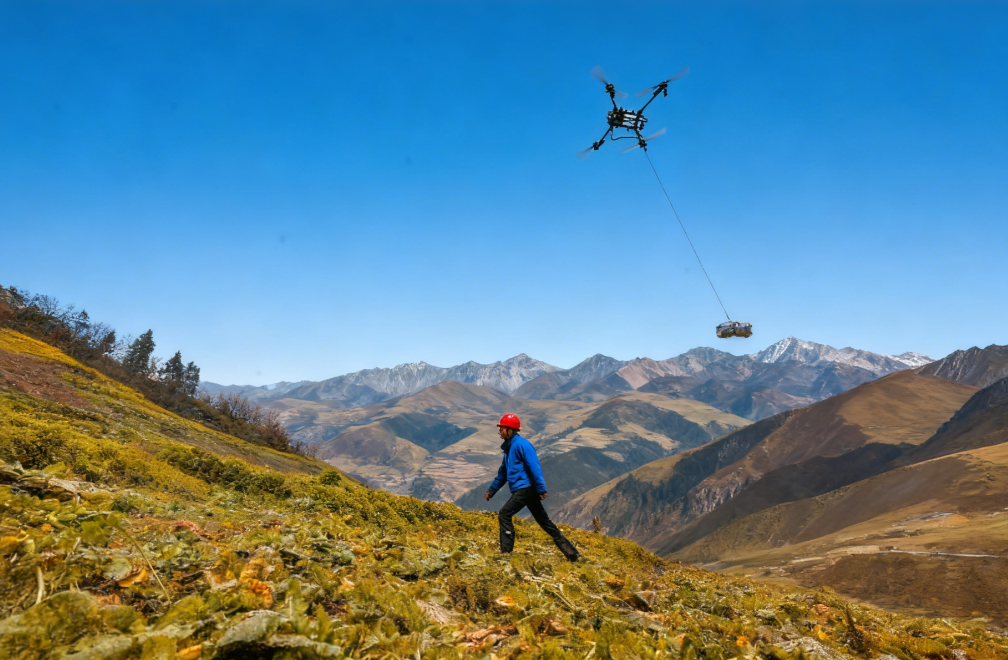 再往南些的四川甘孜,那里平均海拔超過3500米,地形陡峭,雨雪頻繁,倘若隔著大山,物資運輸往往要耗費數(shù)小時。而借助無人機,當(dāng)?shù)剜]政能將一小時的運輸時長縮短至十幾分鐘。