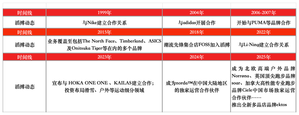圖為滔搏合作品牌主要動態(tài)變化