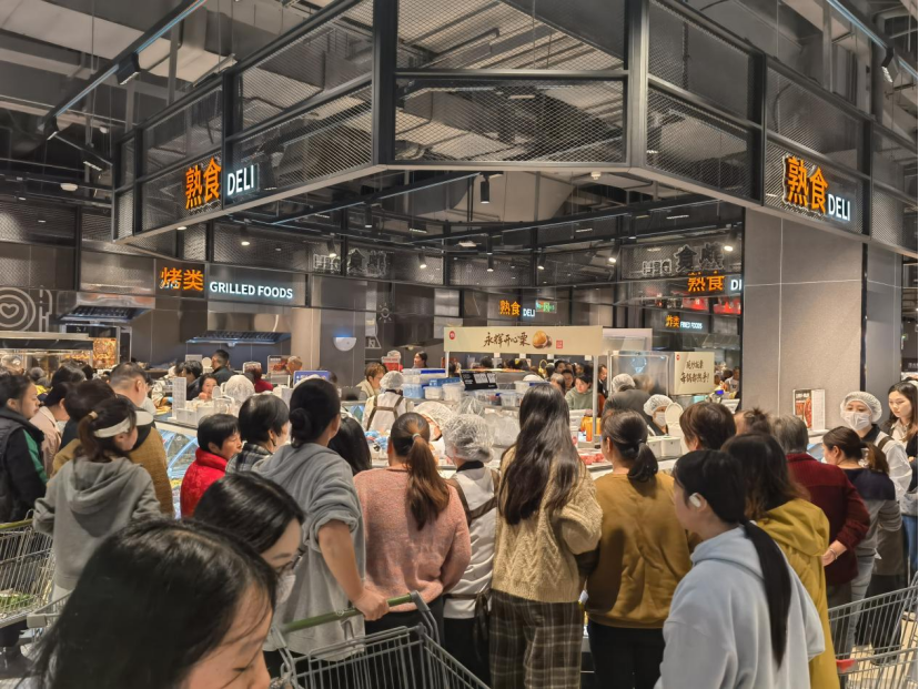 生鮮板塊秉持“安全、健康、品質(zhì)、便捷、時(shí)尚”的原則,引入?yún)^(qū)域性特色商品,包括有機(jī)、高山種植及定向種植等特色蔬果,強(qiáng)化源頭直采優(yōu)勢(shì)。熟食區(qū)作為提升體驗(yàn)的關(guān)鍵品類,東來同款韓式炸雞、小甜腸、牛肉條、麻辣豬蹄等香氣十足,與本地特色烤鴨、南京鹽水鴨、桂花糕等風(fēng)味美食“同臺(tái)獻(xiàn)藝”,明檔廚房現(xiàn)場(chǎng)制作,保障口感與品質(zhì)。