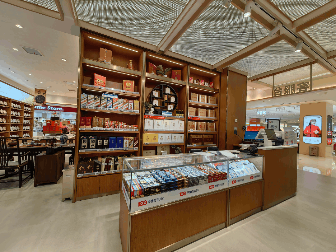 再向里走,是團(tuán)購中心和客服中心,各種名酒、禮品及華豫佰佳自有品牌的烘焙、飲料、酒類禮盒堆碼于此,量感突出。