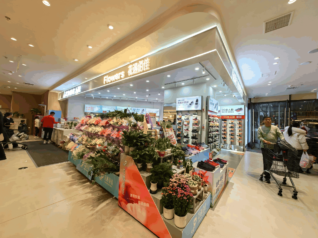 而門店的另一出口處,還有“花遇佰佳”花店設(shè)計(jì)巧妙,讓顧客在購物之余,能夠順手帶一束鮮花回家,為生活增添一抹亮色。