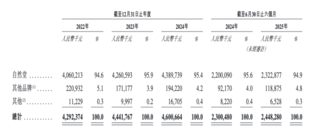 而自然堂的問題則在于第二增長(zhǎng)曲線遲遲無法上揚(yáng),其后續(xù)創(chuàng)建的多個(gè)品牌,目前唯有珀芙研的營(yíng)收于2024年正式過億,其余三個(gè)品牌的貢獻(xiàn)較少。招股書顯示,2022-2025年上半年,旗艦品牌自然堂占集團(tuán)總營(yíng)收的比例接近95%。