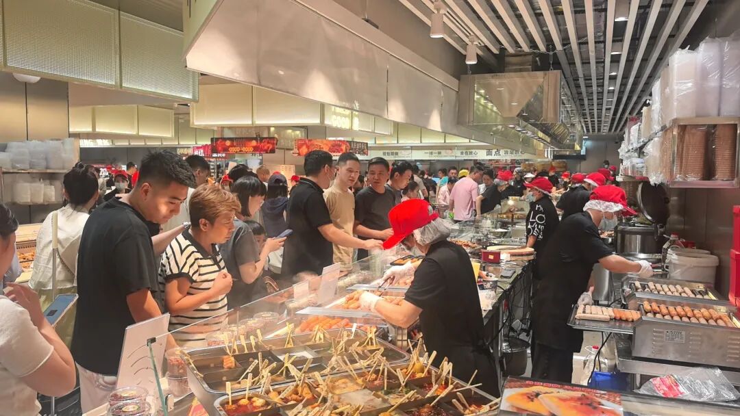 西安的成山農(nóng)場(chǎng)則以“餐超一體” 為特色,新開的御錦城店設(shè)置大面積餐飲區(qū),采用“明廚亮灶”設(shè)計(jì),所有美食現(xiàn)場(chǎng)制作,消費(fèi)者可以清晰看到食材品質(zhì)與制作全過程。