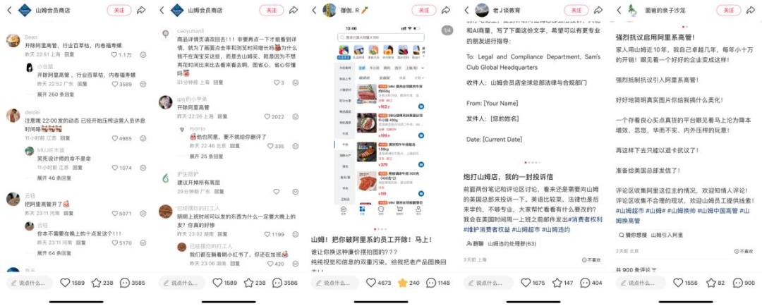 這一改動迅速“點燃”本就不滿的用戶,認為劉鵬帶來了“阿里味”,山姆官方小紅書賬號的評論區(qū)被“辭退阿里高管”刷屏,相關(guān)詞條沖上熱搜。