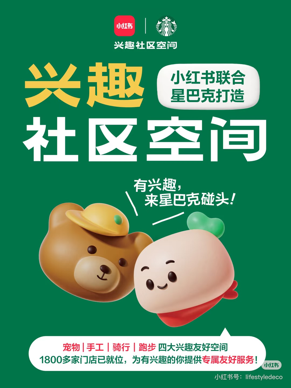星巴克不會脫離購物中心,但可以在中國市場可以嘗試尋找新的空間氛圍定位。一個信號是,星巴克中國在攜手小紅書APP,將全國1800余家門店升級為寵物、手工、騎行、跑步四大主題的「興趣社區(qū)空間」,通過服務興趣社群,來強化社交、社區(qū)連接點的定位。