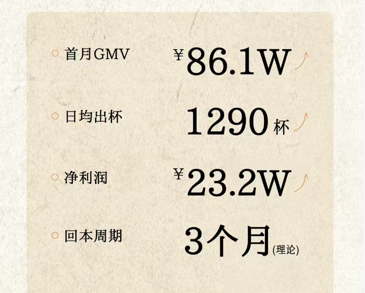 若考慮加盟店的情況,加入品牌合作費(fèi)8.8萬元、實(shí)收金額2%的管理費(fèi)(按該店實(shí)收67.35萬元計(jì)算,約1.35萬元)、1萬元保證金,加盟店的回本周期約為4.7個(gè)月。當(dāng)前新茶飲行業(yè)多數(shù)品牌的回本周期在12個(gè)月以上,泰柯的回本周期遠(yuǎn)低于行業(yè)平均水平,這意味著加盟商能更快收回投資,降低經(jīng)營風(fēng)險(xiǎn),投資吸引力顯著。
