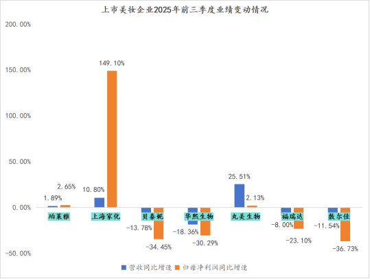 向來是高增長代表的珀萊雅,其1-9月營收同比增長1.89%至70.98億元,歸母凈利潤同比增長2.65%至10.26億元。貝泰妮、華熙生物、福瑞達、敷爾佳均出現(xiàn)不同程度的營收下滑,而處于轉(zhuǎn)型期的上海家化、丸美生物,則實現(xiàn)了逆勢增長。