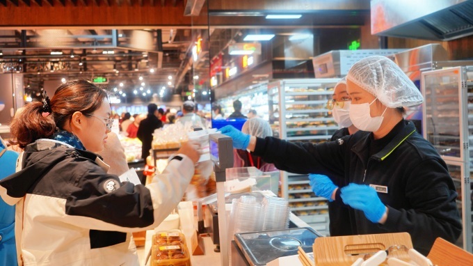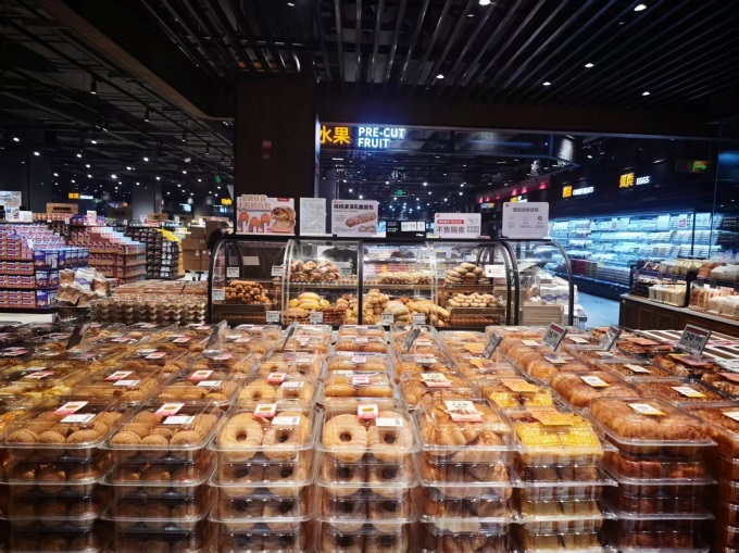 熟食區(qū)匯聚200多支商品,在引入品牌鹵味廠商的同時,豐富現(xiàn)場制售品類,涵蓋韓式炸雞、奧爾良烤雞、手撕雞、鍋包肉、壽司拼盤等多地風味;烘焙區(qū)引入90余支商品,提升現(xiàn)制現(xiàn)售占比,主推“桂花豐收的喜悅”“山茶花吐司”“草莓盒子蛋糕”等新品,聯(lián)合優(yōu)質(zhì)供應商,以現(xiàn)場烘焙的香氣與品質(zhì)吸引顧客駐足。