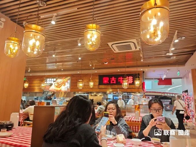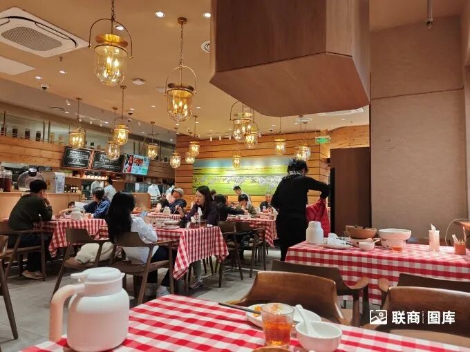 午間12:00-13:00的用餐高峰時段,在聯(lián)商網(wǎng)走訪的西貝北京大興龍湖天街店內(nèi),雖然是工作日,等位區(qū)已有顧客有序等候。店內(nèi)上座率穩(wěn)定在90%左右,其中以年輕客群為主,也有不少老年人。