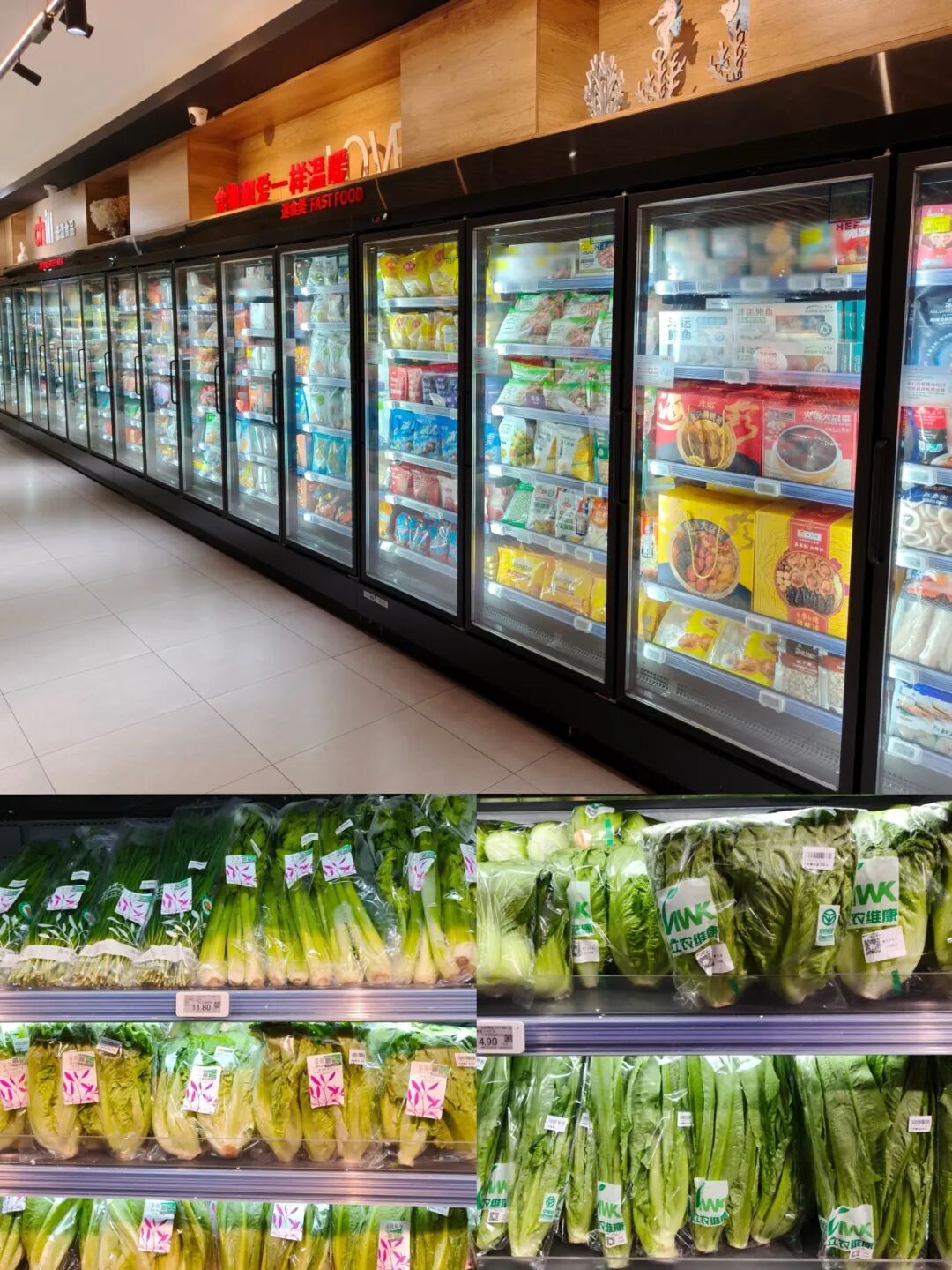 數(shù)據(jù)顯示,萬德隆超市萬悅城店生鮮占比約37.5%,超80%采用精包裝售賣,涵蓋蕓嶺鮮生、立農(nóng)維康等頭部品牌有機蔬菜;店內(nèi)大量陳列方式采用冷柜,總數(shù)量百余臺,其中僅精包裝的一條水果冷藏柜就長達5米。