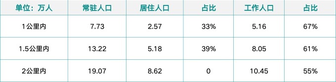 參考北京金融街、上海陸家嘴等同類金融集聚區(qū)的人口結(jié)構(gòu)數(shù)據(jù),專業(yè)群體與配套服務(wù)群體的比例大致為6:4。據(jù)此推算,在本項目1公里范圍內(nèi)(非戶籍比例按59%計):非戶籍人口約4.6萬人;工作人口中,專業(yè)群體約3.1萬人,配套服務(wù)群體約2.1萬人。