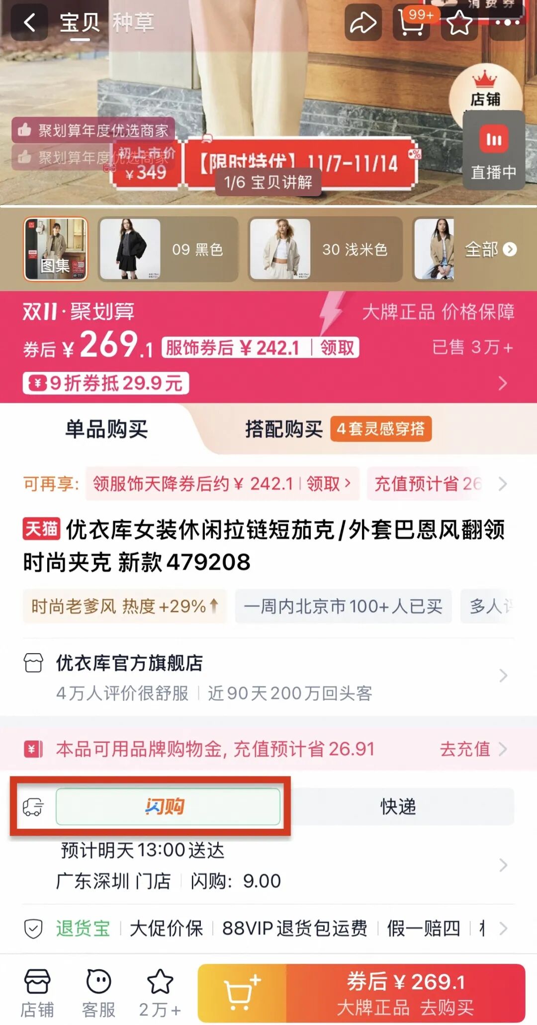 以優(yōu)衣庫(kù)為例,消費(fèi)者在優(yōu)衣庫(kù)天貓旗艦店下單時(shí),可以選擇“閃購(gòu)”服務(wù),由距離最近的門店發(fā)貨,最快半小時(shí)送達(dá)。天貓雙11數(shù)據(jù)顯示,截至11月5日,淘寶閃購(gòu)帶來(lái)的新用戶在雙11期間的電商訂單數(shù)已超過(guò)1億。