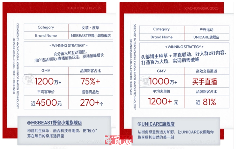 雙11期間,小紅書成交額破千萬的商家數(shù)同比增長140%,破百萬的商品數(shù)同比增長145%。買手群體成為核心增長力,成交額貢獻(xiàn)同比提升73%,章小蕙、吳千語等頭部買手直播間單場成績創(chuàng)新高,開播買手?jǐn)?shù)量同比增長80%;中小商家也迎來爆發(fā),月銷10萬以下的商家中,超三成成交額實(shí)現(xiàn)翻倍增長。