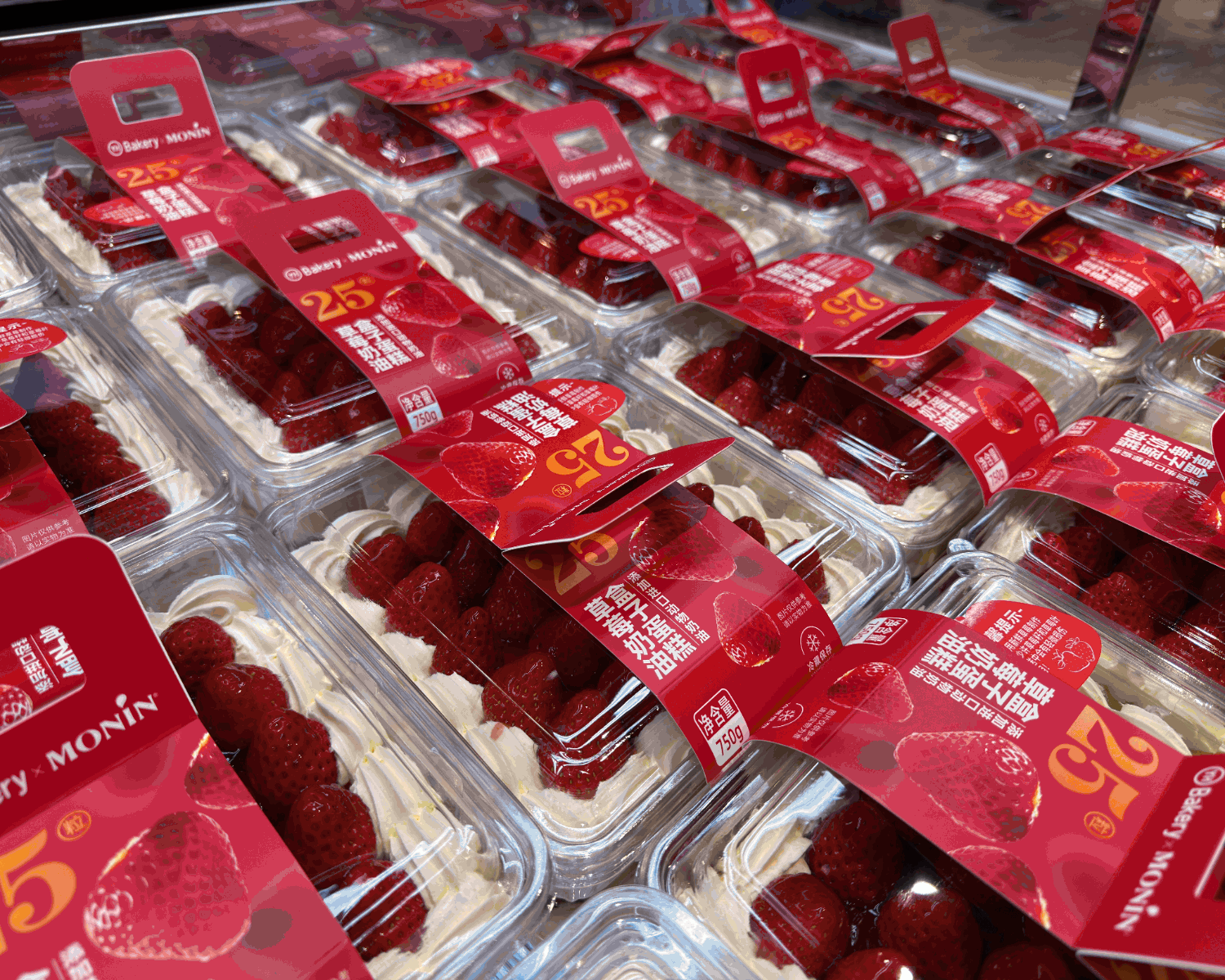 在生鮮區(qū),有機蔬菜、定向種植蔬菜與智利車厘子、丹東紅顏草莓等全球特色水果匯聚一堂。肉禽區(qū)引入現(xiàn)切潮汕牛肉、進口原切牛排等高質價比商品,水產(chǎn)區(qū)則陳列鮮活梭子蟹、海白蝦及永輝定制E+級三文魚等優(yōu)質海鮮。烘焙、熟食區(qū)除了現(xiàn)烤烤鴨、小甜腸、核桃滿滿乳酪面包等爆品,還有草莓盒子蛋糕、純肉盤腸等新品誘惑十足。