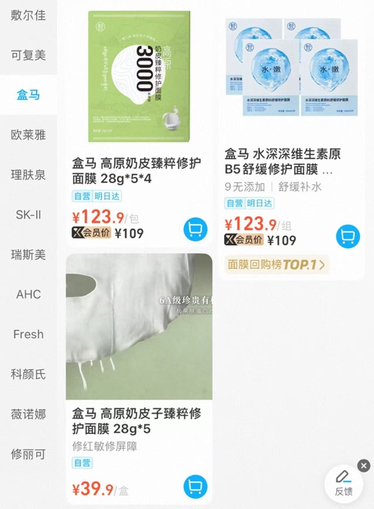 而除了奢侈品之外,在時尚品類方面,盒馬也擴充了美妝和護膚相關(guān)產(chǎn)品,包括面霜、化妝水、唇膏、面膜和乳液等,涵蓋了歐萊雅、蘭蔻、雅詩蘭黛、資生堂和海藍之謎等品牌。此外,在面膜等品類上,盒馬也在出售自有品牌的相關(guān)產(chǎn)品。