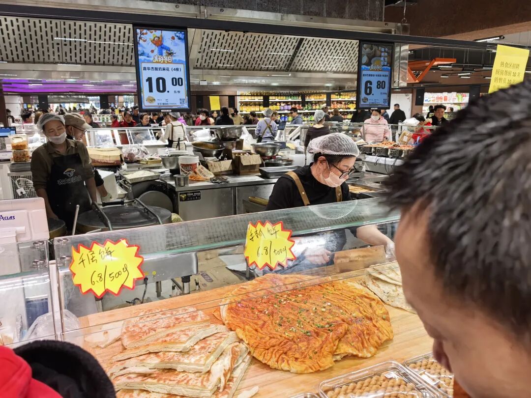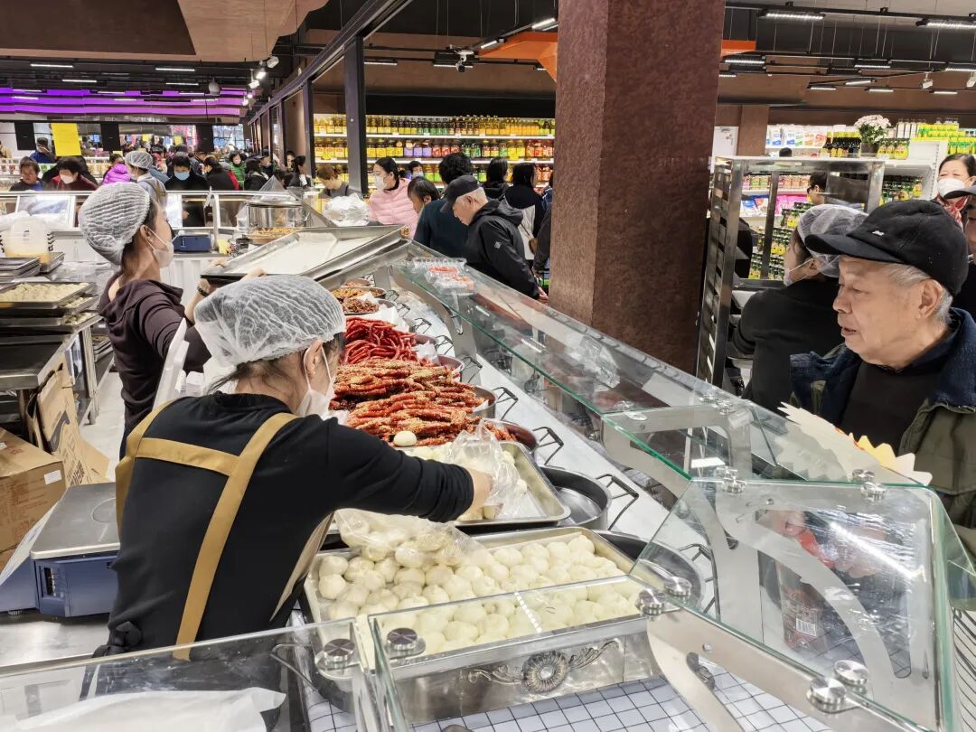 “這兩年熟食加工比較火,餐超概念逐步成為傳統(tǒng)商超的共識。我們的熟食加工也是重點,包括烘焙,但我做的很接地氣,更具煙火氣,像現(xiàn)場做煎餃,現(xiàn)場爆爆米花,現(xiàn)場熱氣騰騰的小籠包和鮮美的小龍蝦,都是我們的特色”,劉明軍告訴我們。