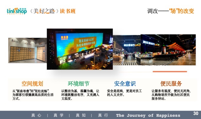 守誠(chéng)(永輝超市CEO王守誠(chéng))說(shuō)過(guò),要把60%-80%的時(shí)間用在對(duì)的地方。原來(lái)是不是都用在想怎么掙錢?用在商品上了嗎?沒(méi)有,F(xiàn)在他們用了,我們也在學(xué)。還有60%-80%的時(shí)間要用在員工身上。我們也在學(xué),跟員工交心,了解他們的生活和工作狀態(tài)。這樣,我們?cè)跒閱T工創(chuàng)造幸福時(shí),才知道方向在哪里。