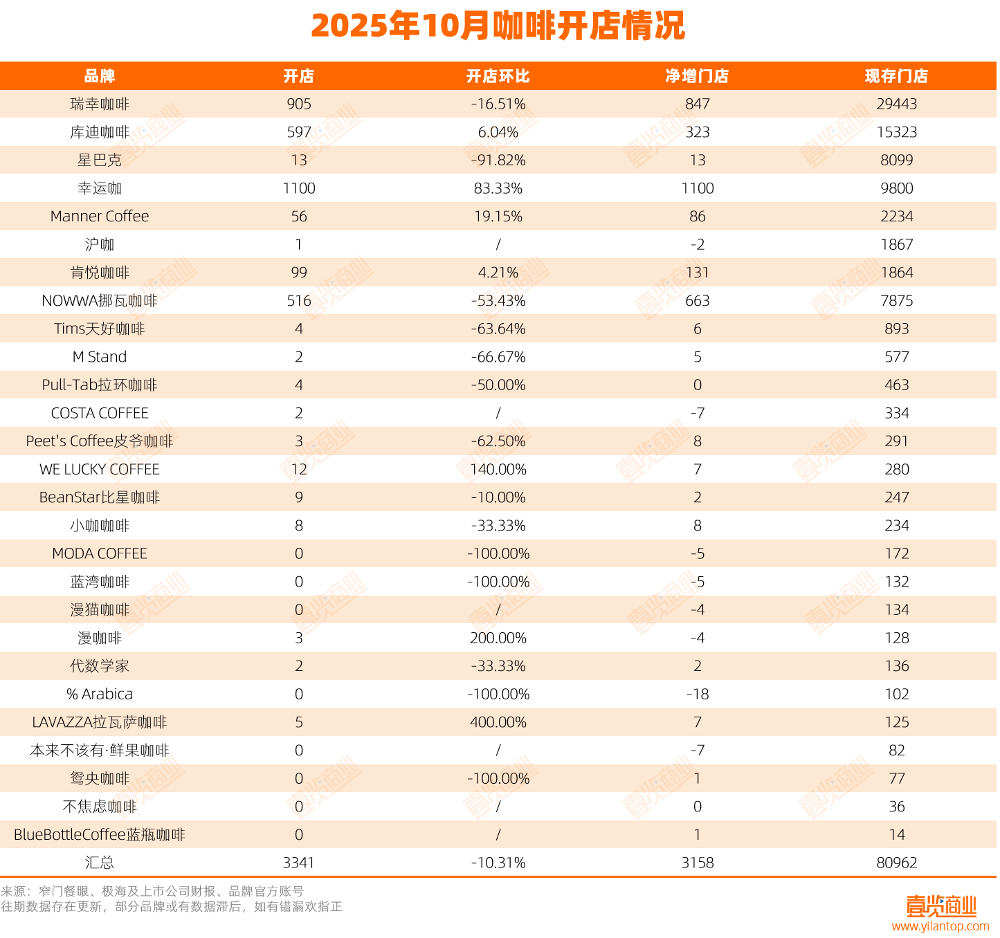 10月,咖啡開店3341家