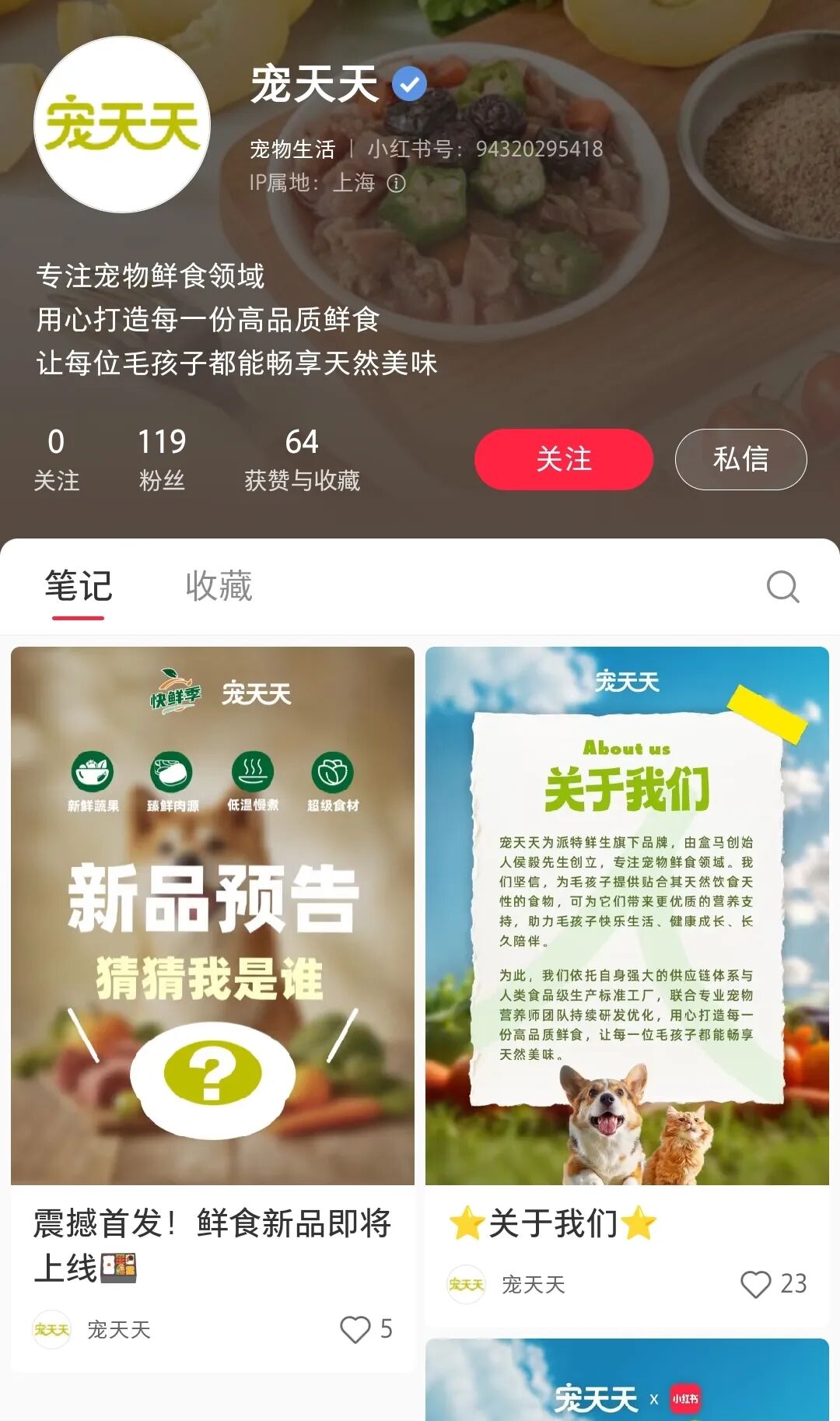 目前,寵天天已經(jīng)入駐小紅書開通賬號,截止發(fā)稿,僅3條帖子,粉絲數(shù)為119人,發(fā)帖點贊量最高為29個。