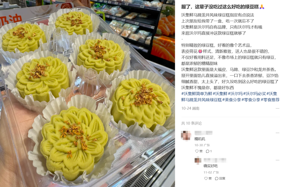 ▲網(wǎng)友在社交媒體發(fā)文夸贊馬蹄龍井風(fēng)味綠豆糕