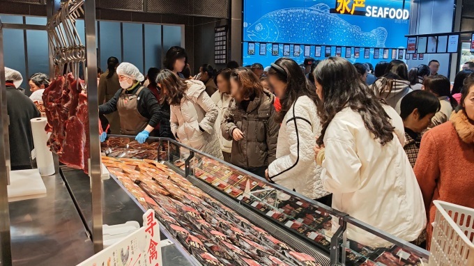 此外,門店新增多項便民措施,包括顧客休息區(qū)新增微波爐、直飲水設備等方便即食的設備,并在肉禽、海鮮、水果等區(qū)域提供免費加工服務。例如肉禽區(qū)支持切絲、切片等個性化處理;海鮮區(qū)則提供清洗、打氧和簡單加工等貼心服務。