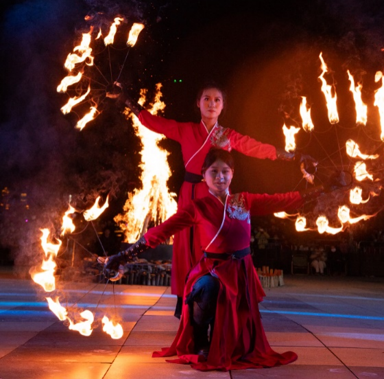 節(jié)慶氛圍在每周末進(jìn)一步升溫。11月15-16日、22-23日每晚18:00,大型火秀系列表演將輪番上演!赤焰狂歡大巡游準(zhǔn)時登場,火把騎士在商場內(nèi)互動巡游;在1號門外廣場,震撼的非遺火秀同步舉行:“火虎”“火壺”“火魔方”“火舞”“噴火刀火棍”等傳統(tǒng)絕技將把夜空裝點得璀璨奪目,更有非遺“火虎出山”壓軸亮相。