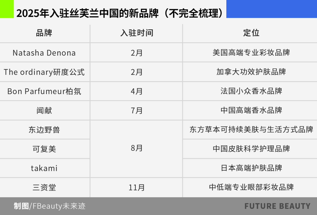 2025年以來,絲芙蘭中國持續(xù)擴(kuò)充新品牌矩陣,官方公開的新入駐品牌至少已有7個。